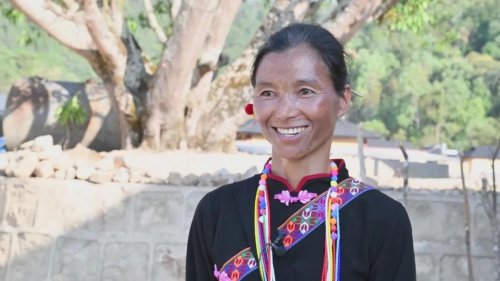 跟着取好快递的村民钟小兰的脚步,记者走进她年初刚搬进的两层新家。自2022年4月现代化边境幸福村建设项目启动以来,班角老寨的村民们在当地政府帮助下纷纷盖起了新房。站在钟小兰家二层放眼望去,国境线另一侧的山峦清晰可见,感受到记者一行的好奇,去过缅甸的钟小兰跟记者分享了自己的见闻。顿了顿,她冲记者展开幸福的笑容:“现在村里水电、网络、取快递都很方便,我感觉生活在中国,真的很幸福!”