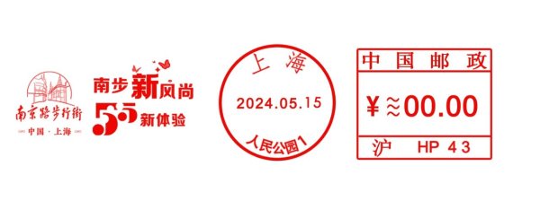 同时,上海邮政特为活动发布了《南步新风尚5·5新体验》邮资机戳1枚以及《邮差宝贝快闪邮局》主题邮资机戳1枚,供游客朋友们纪念打卡。