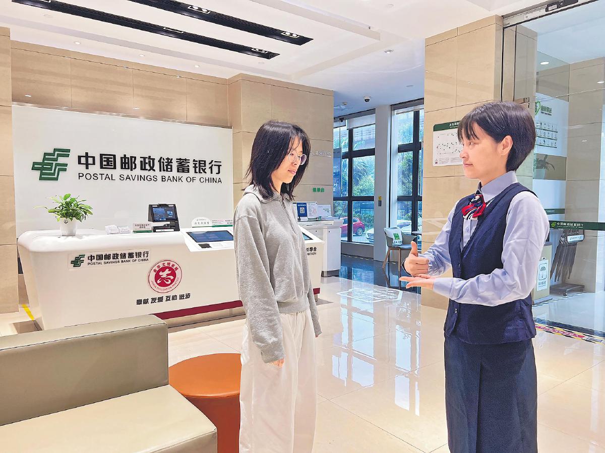 去年10月,有两位听障客户来到网点办理储蓄卡挂失。那天正好是包秦琳值班,她用准确熟练的手语为客户服务。看到包秦琳会手语,客户原本焦虑的情绪缓解了许多。包秦琳不仅快速帮助客户办理完挂失补卡,还教会他们使用手机银行办理业务。临走时,客户用手语称赞道:“谢谢,你的服务真棒,邮储银行真棒!”在包秦琳的带动下,浙江省分行已建立了一支20余人的手语专员队伍,他们每天坚持练习银行常用手语,让更多特殊客户也能享受到安全、便捷、暖心的金融服务。
