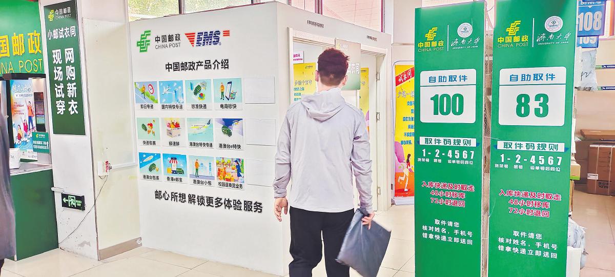 济南大学邮政驿站“小邮试衣间”。□孙明辉 摄