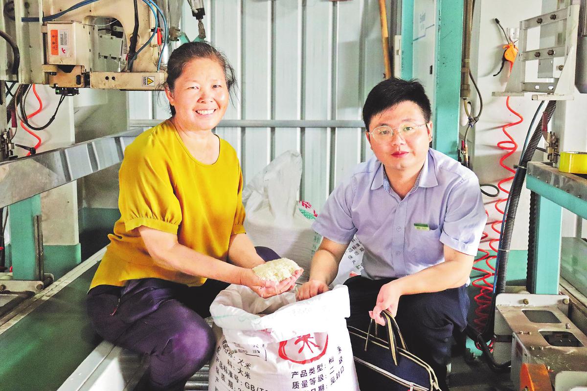 韶关是广东省粮食和蔬菜等重要农产品供应基地。韶关市分行认真贯彻国家及省、市政府对“三农”工作的相关决策部署,加大涉农领域信贷资金投放力度,为夏粮收购、颗粒归仓提供全方位金融支撑,助力粤港澳大湾区“米袋子工程”建设。截至7月末,该分行累计发放涉农贷款余额超过50亿元。图为冠奕通公司负责人徐石凤(左)向邮储银行信贷人员展示刚生产加工出来的新大米。