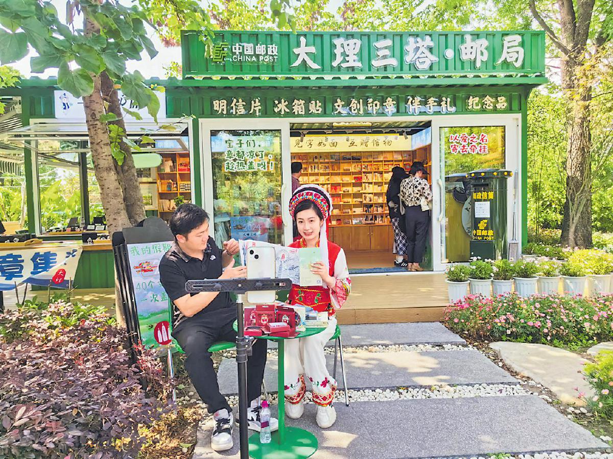 大理三塔主题邮局开展直播活动。
