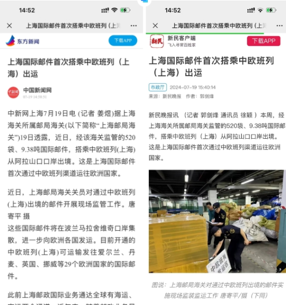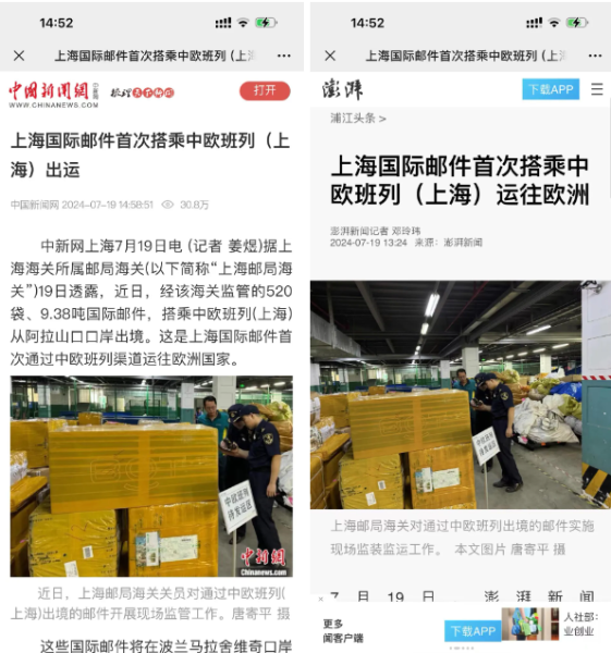 日前,多家媒体报道播出“上海号”中欧班列启运的新闻。聚焦中国邮政服务,共建“一带一路”高质量发展。
