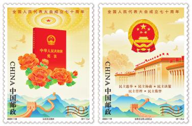 9月15日,《全国人民代表大会成立七十周年》纪念邮票将发行。