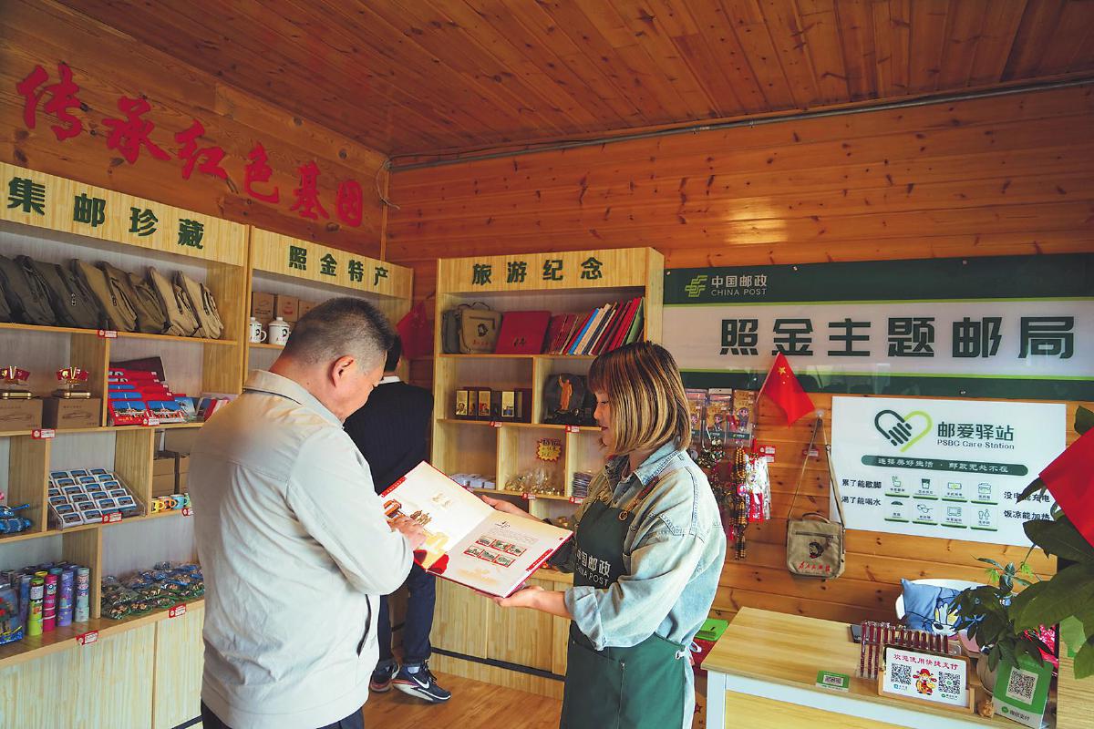 铜川市邮政分公司以红色照金主题邮局为主阵地,与照金纪念馆、照金管委会、照金开发公司、干部管理学院等相关单位在红色邮品、政务图书、党建笔记本以及文创纪念品开发、供应等方面开展了深度合作。围绕照金红色教育资源,开发了照金主题邮资明信片、照金主题信封、弘扬照金精神邮册等产品;围绕铜川特色人文资源,开发了《品秦》《龙脉秦岭四宝》等文创产品和《柳公权书法》《药王孙思邈》等主题的个性化邮折;借助邮政独特的资源优势,带动了一系列政务图书的销售。红色照金主题邮局还特别制作了照金革命根据地红军洞、薛家寨、纪念碑、纪念馆等6枚纪念戳,为广大游客及集戳爱好者提供打卡服务。