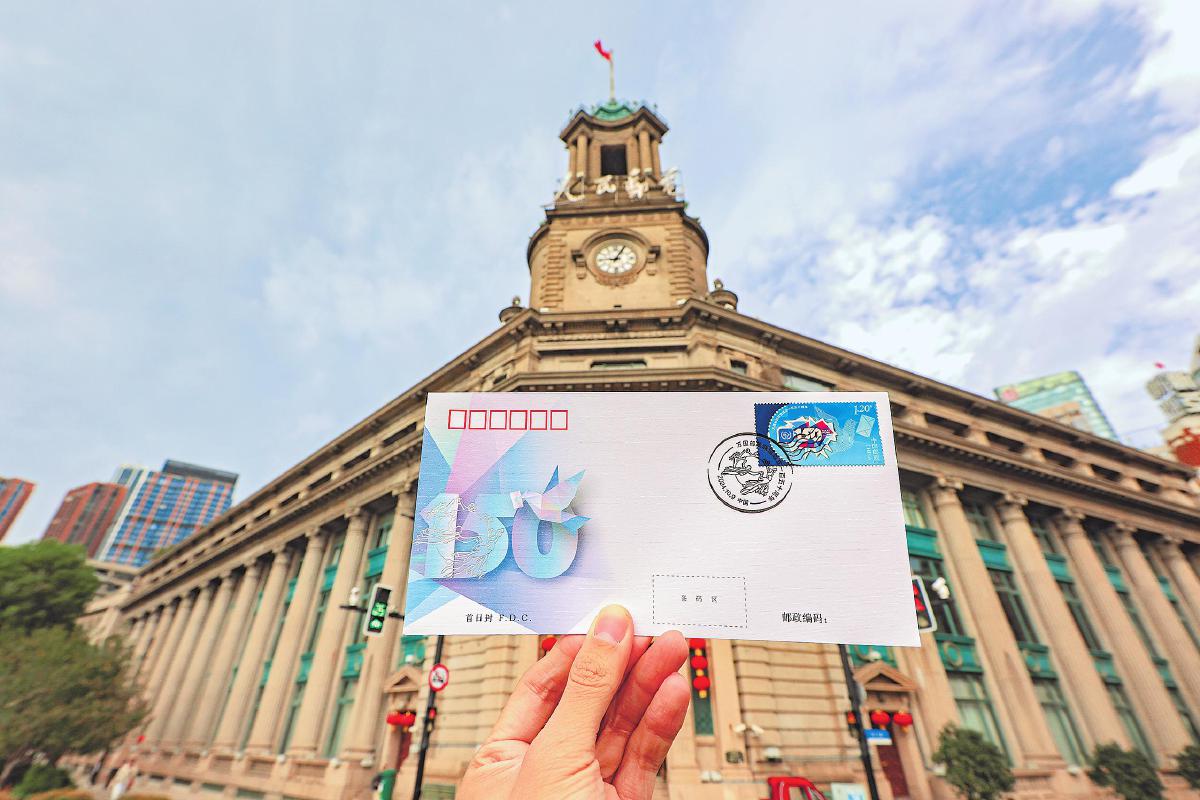 10月9日,上海市邮政分公司在全市各大邮政网点举办世界邮政日主题宣传活动。当天,中国邮政发行了第55届世界邮政日纪念封、《万国邮政联盟成立一百五十周年》纪念邮票和《第55届世界邮政日》YFM118E型邮资机戳,不少市民纷纷前来购买并加盖纪念邮戳。 □许雨舟 摄