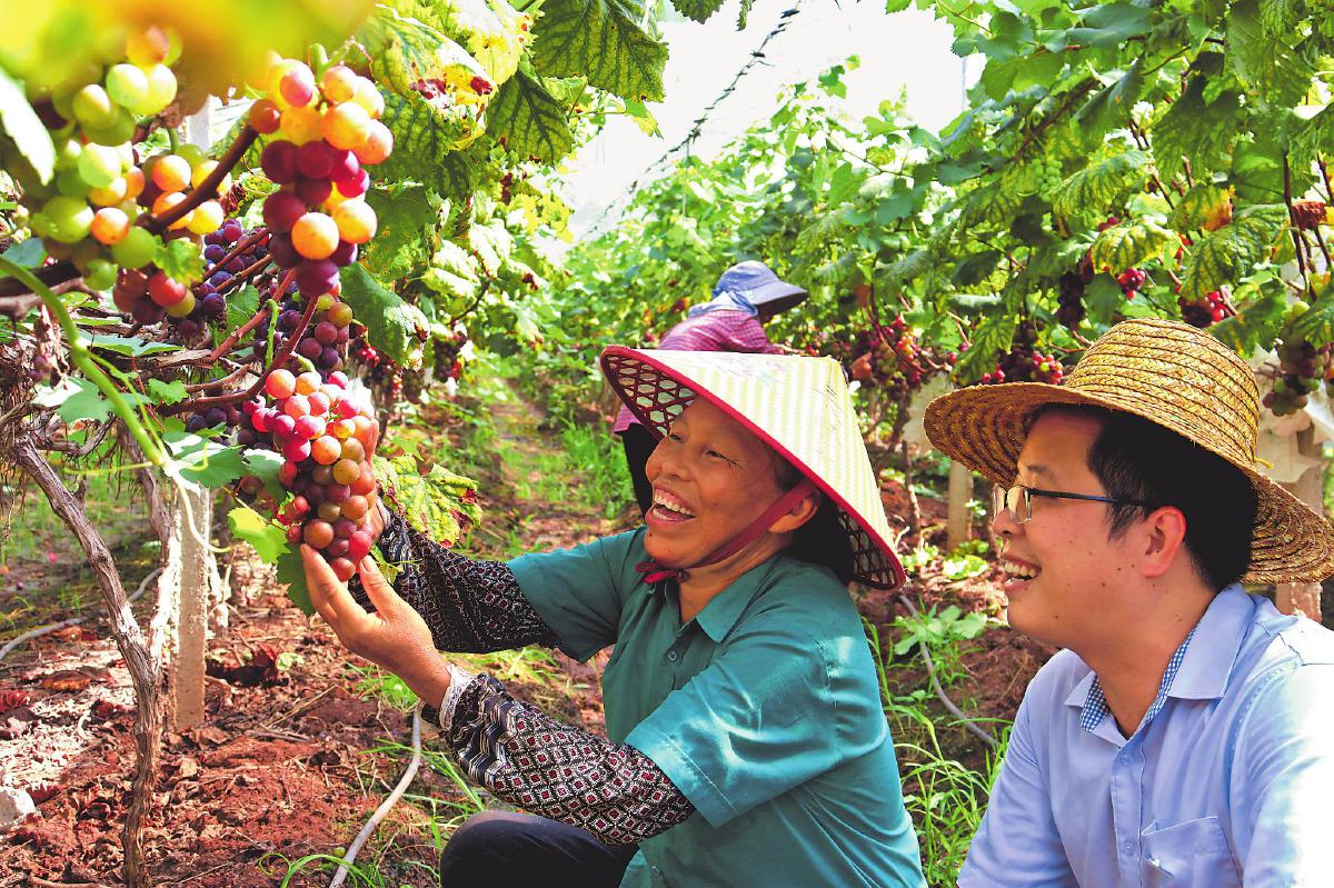 金秋时节,广东省韶关市南雄市的古富玑葡萄基地呈现出一派丰收盛景,果农们忙着采摘、装箱,与邮储银行韶关市分行的客户经理分享丰收喜悦。得益于韶关市分行的贷款支持,该葡萄基地引进了先进的种植设备,实现了产量大丰收。