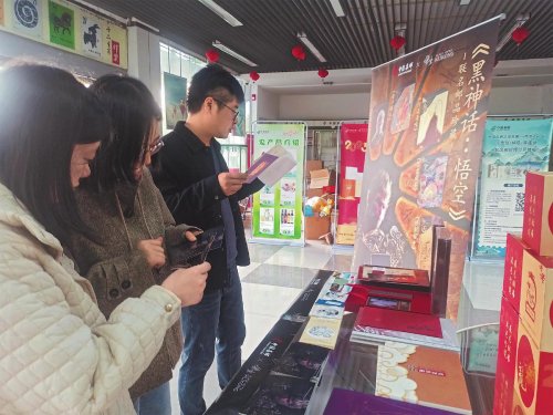 11月8日,在江苏省连云港市西游主题邮局大厅内,一位游戏玩家驻足《黑神话:悟空》联名邮品珍藏展架前。他一边仔细欣赏邮品,一边说:“我是连云港人,从小就对西游文化情有独钟。在《黑神话:悟空》游戏预售阶段,我就预订了豪华版,游戏正式发售后就火速通关。”