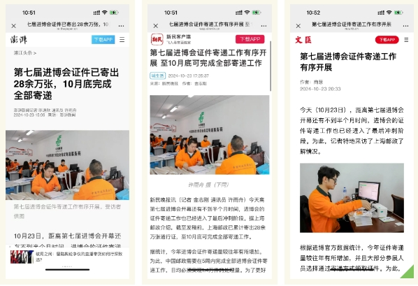 据悉,今年在保留原有“一件一证”与“一件多证”并用的寄递模式的基础上,上海邮政再次升级服务,对符合“一件多证”寄递要求的证件进行预处理,满足参展人员及企业的不同需求,寄递效率进一步提高。同时,为践行绿色低碳的环保理念,上海邮政在今年进博会证件寄递专用包裹的包装上也进行了改良,信息面单尺寸相较往年有所缩小,有效节省包装所需原材料,避免了过度浪费。截止发稿前,上海邮政已累计寄出28余万张通行证,至10月底可完成全部寄递工作。