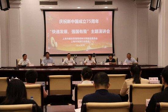 赤旗猎猎舞东风,七十五载显峥嵘。为庆祝新中国成立75周年,展现上海邮政快递行业发展的辉煌成就,致敬伟大祖国母亲,弘扬爱国主义精神,全面贯彻落实习近平新时代中国特色社会主义思想和党的二十大精神、二十届三中全会精神,进一步讴歌新时代上海邮政快递行业取得的非凡成就,日前,上海市邮政管理局精神文明建设委员、中共上海市快递行业协会支部委员会联合主办,上海市邮政分公司承办的庆祝新中国成立75周年“快递发展,强国有我”主题演讲会取得圆满成功。
