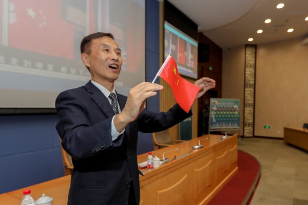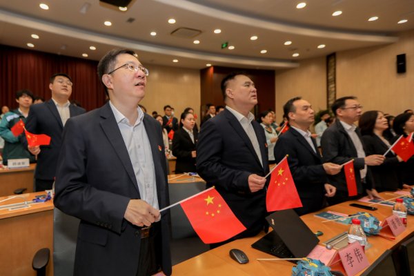 △开班仪式上,与会领导同全体学员们齐声合唱《我和我的祖国》。