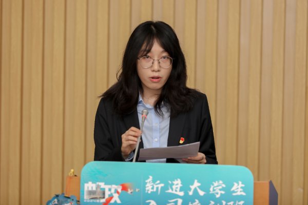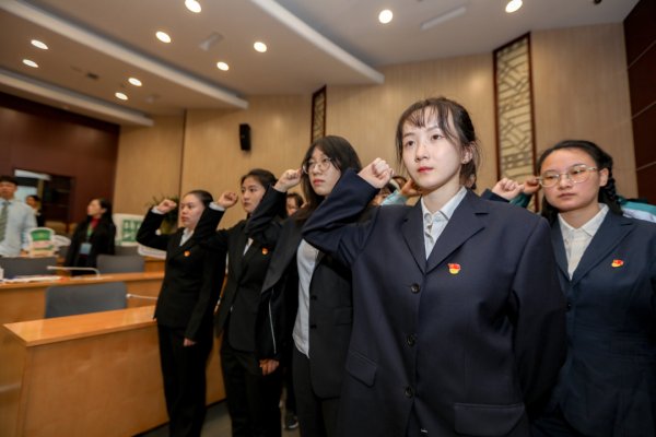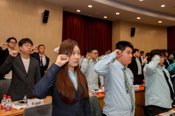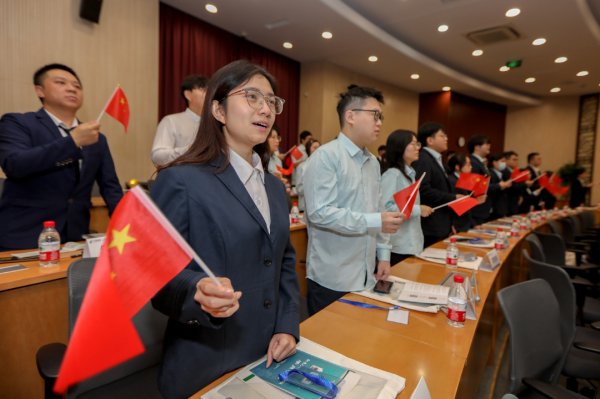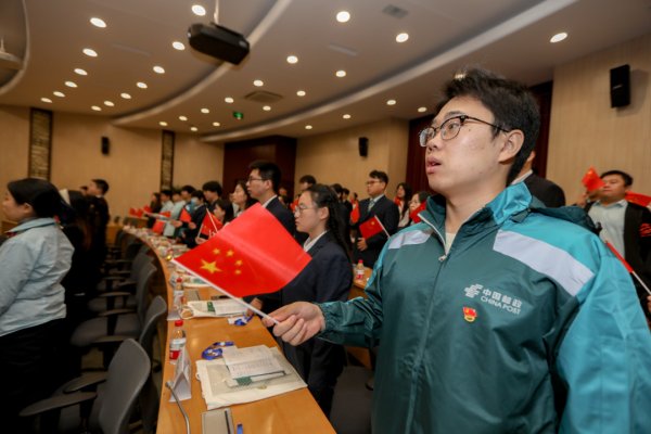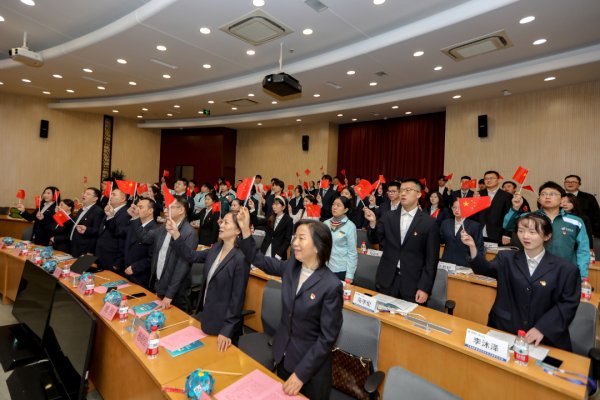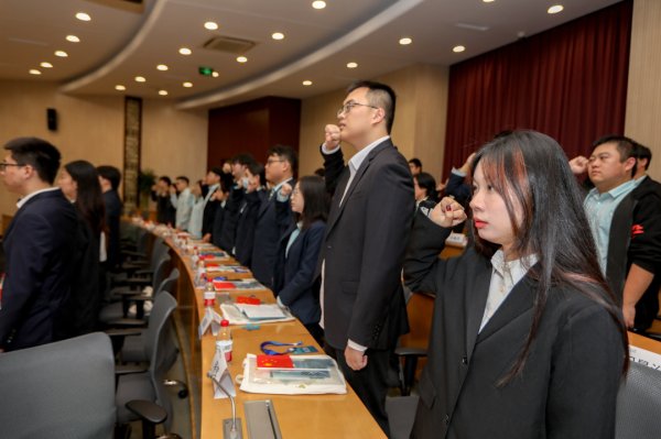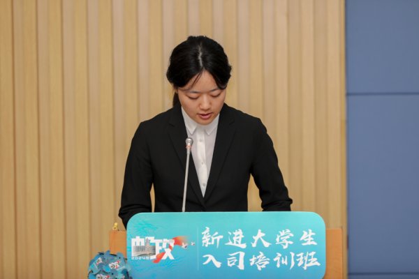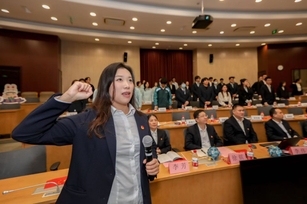 △市分公司团委书记曹蕙绮带领全体学员进行入司宣誓。