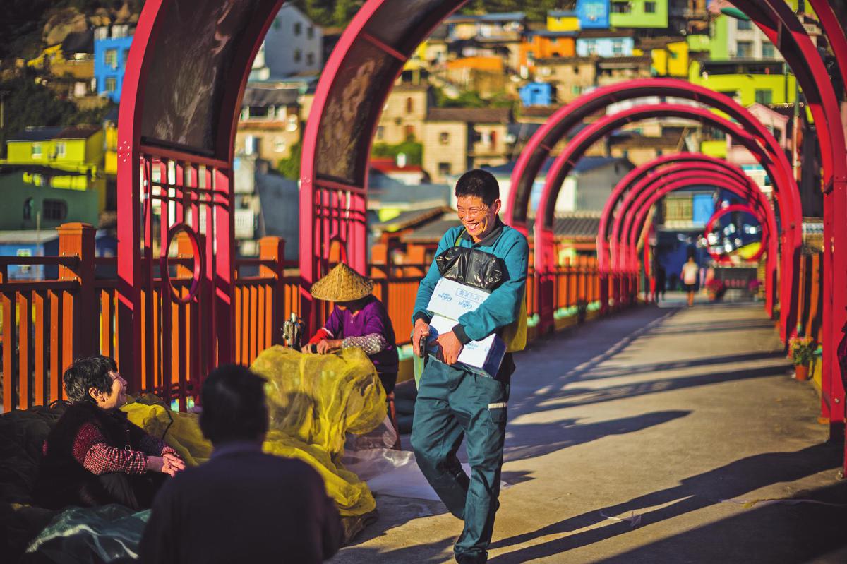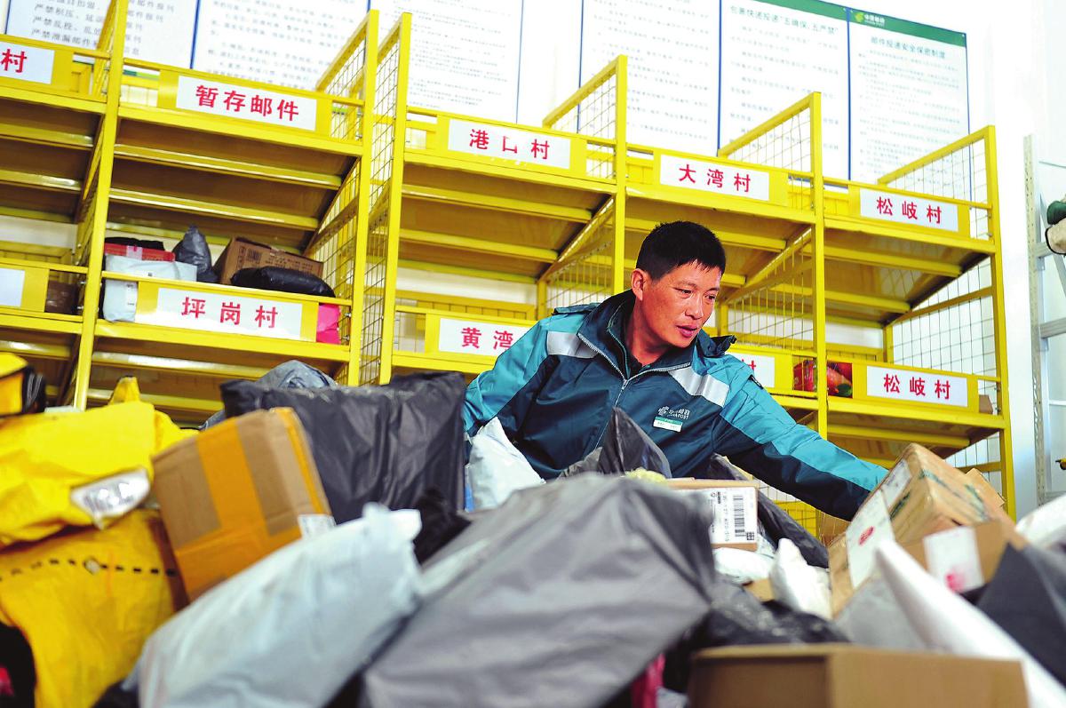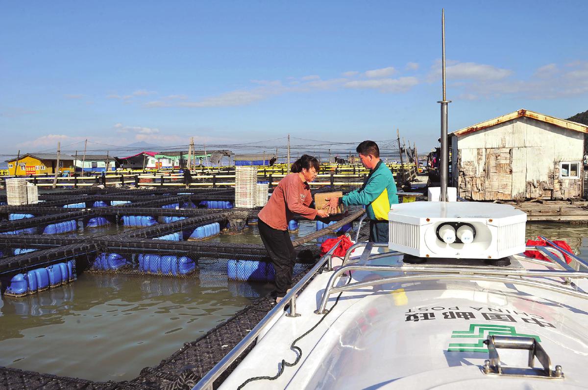 如今,石进全投递的邮件大都是渔民网购的商品。 □吕文礼 摄