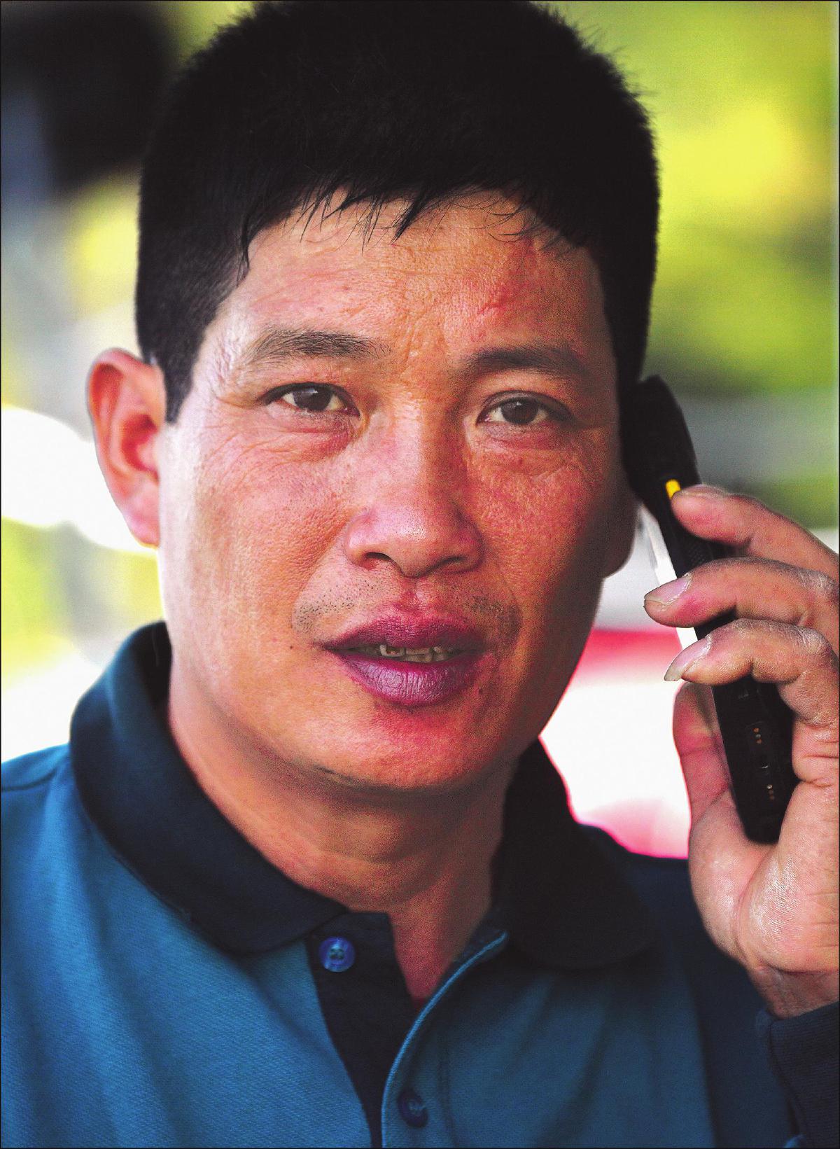 石进全通过“热线电话”与渔民保持密切联系。 □丁幼华 摄