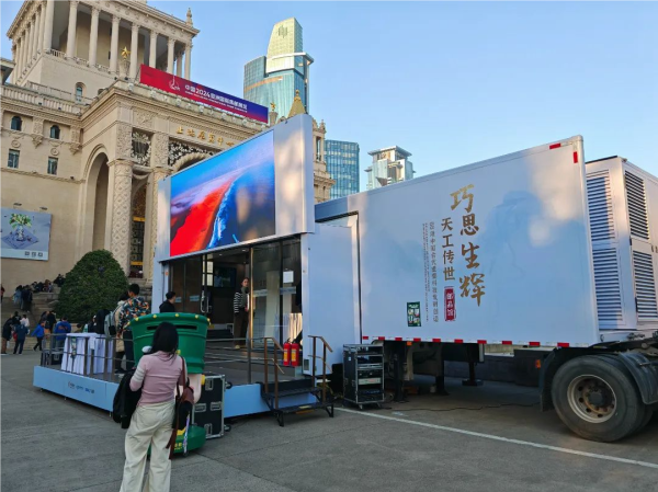 上海展览中心喷水池旁的一台巨型箱体卡车“霸气侧露”,展翅正欲变形,这是“汽车人”派来参展的代表?不,这是一台集古代发明邮品展示和LED显示屏、舞台、可拓展体验区等功能于一体的移动展览大篷车。在由中国集邮有限公司、中邮科技股份有限公司联合推出的这台大篷车上,有中国邮政、中国科学院学部工作局、中国科技传播中心联袂推出的《巧思天工——中国古代重要科技发明创造》系列邮品。在互动区,观众可以扫码观看一段科技发明的动画片,或是在小游戏里动手合成火药,体验古代的科技发明创造。走进这辆车,仿佛穿越到古代,可沉浸式体验科技界与集邮界的扛鼎之作,感受中华优秀传统文化的魅力。