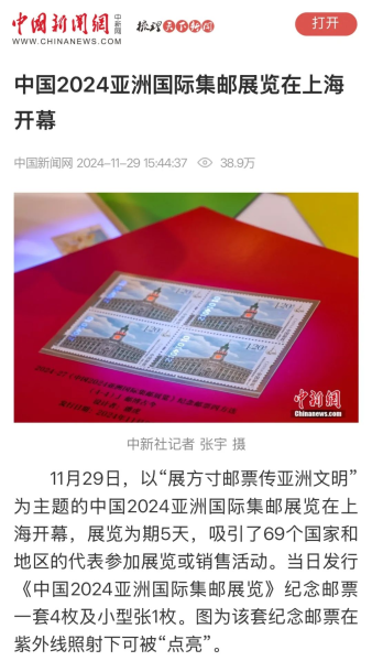 聚焦中国2024亚洲国际集邮展览开幕