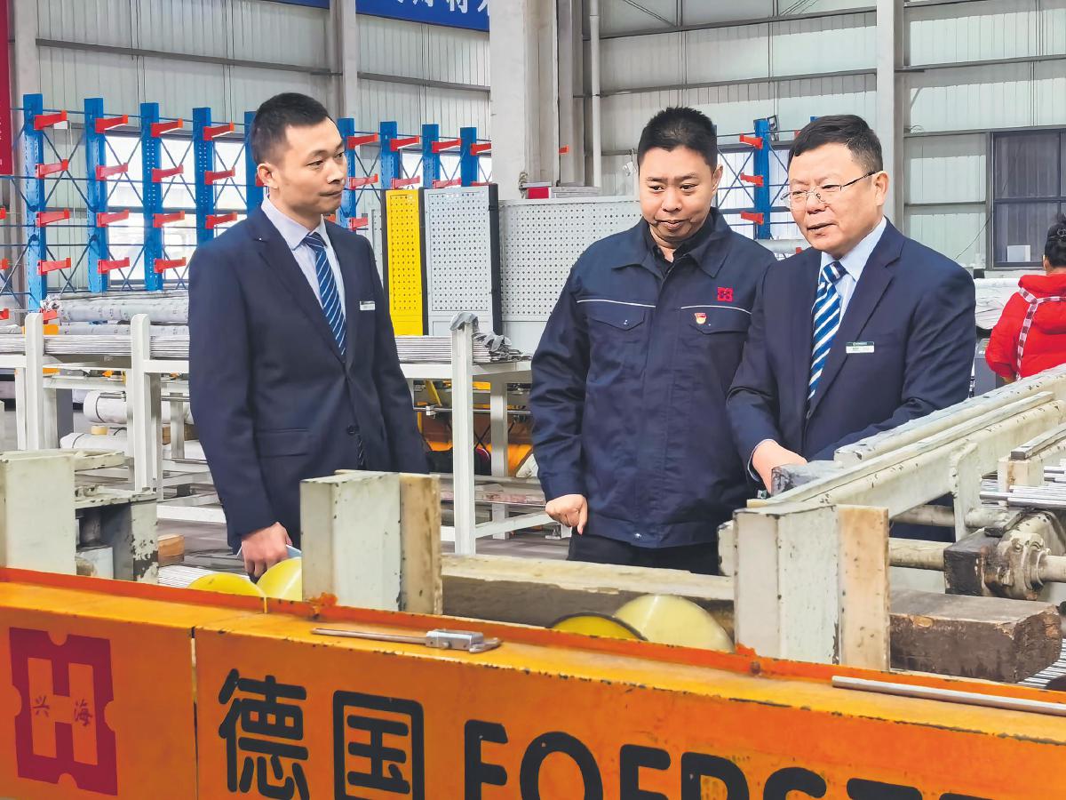 泰州市分行工作人员到江苏兴海特钢有限公司涡流探伤检测车间了解生产运行情况。