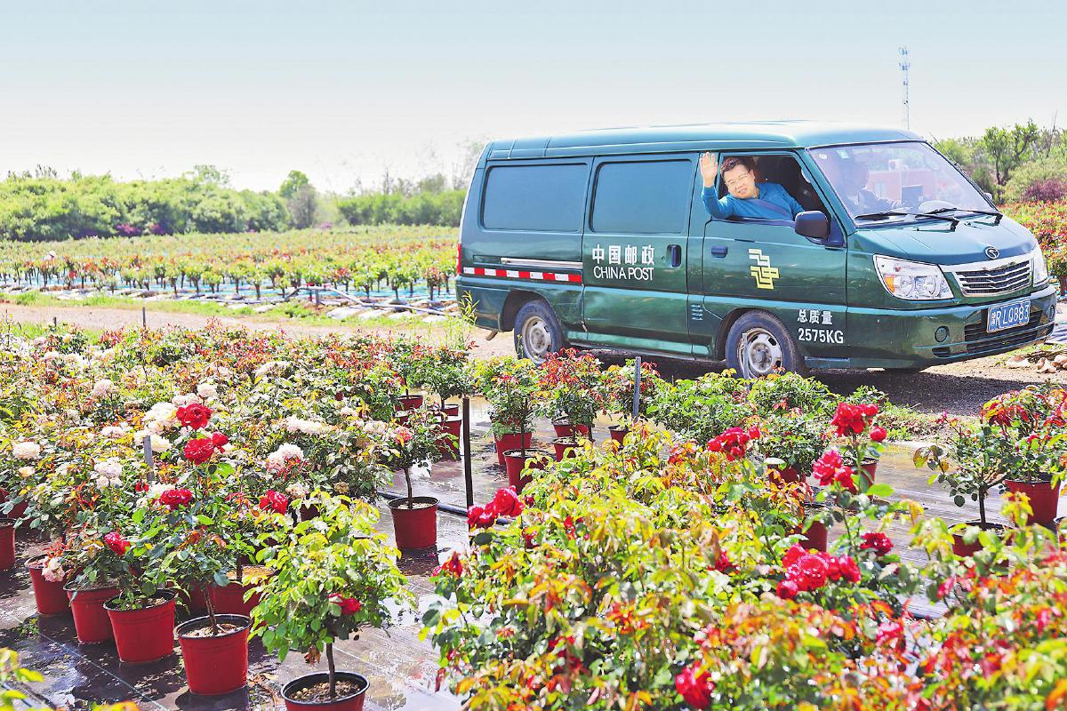 花容秀丽、芳香馥郁的南阳月季通过邮政渠道进入千家万户。□刘力扬 摄
