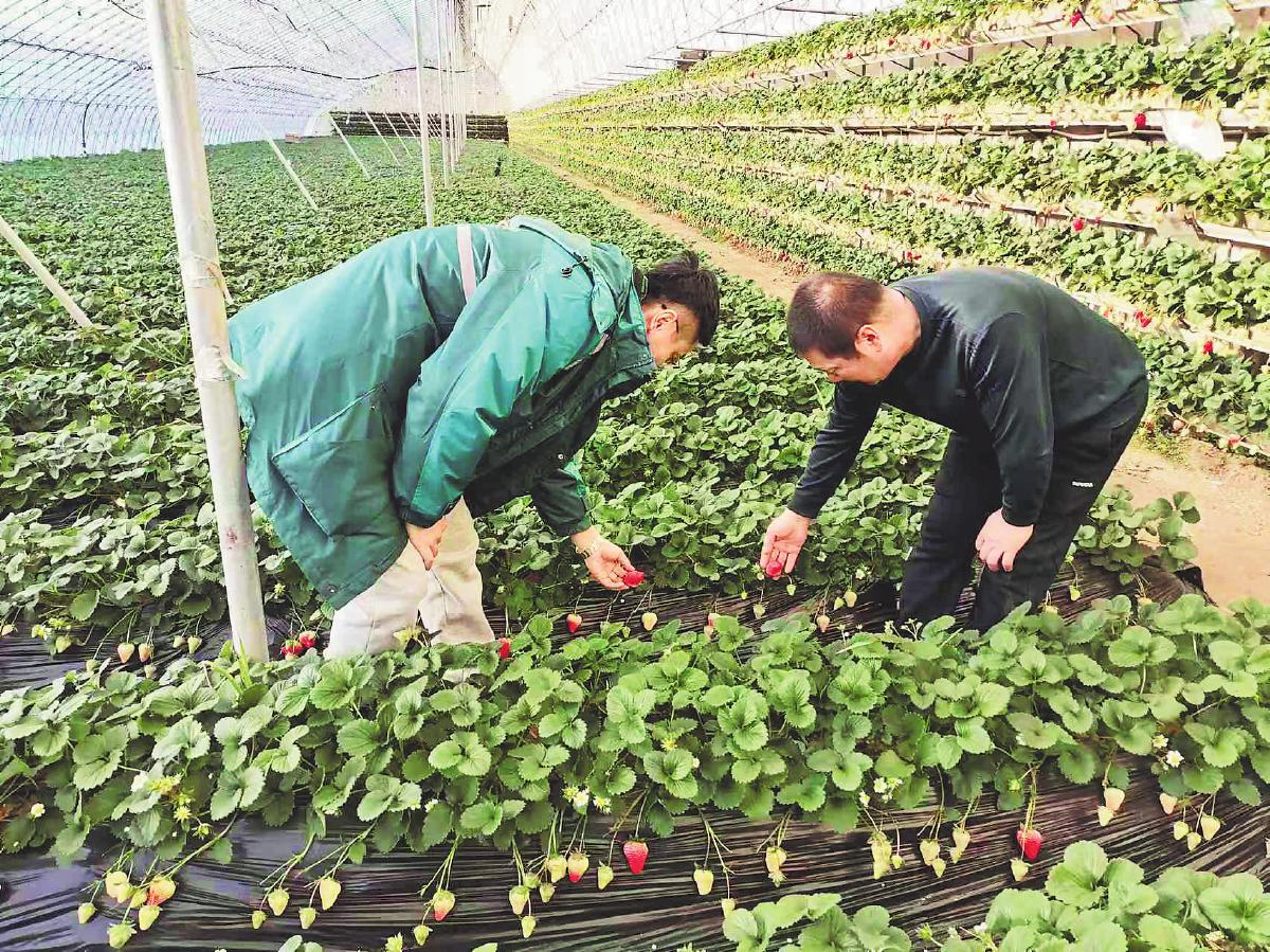 丹东市分公司揽投人员驻点为草莓种植户提供采摘、套袋、封装、打包服务。 □高环宇 摄