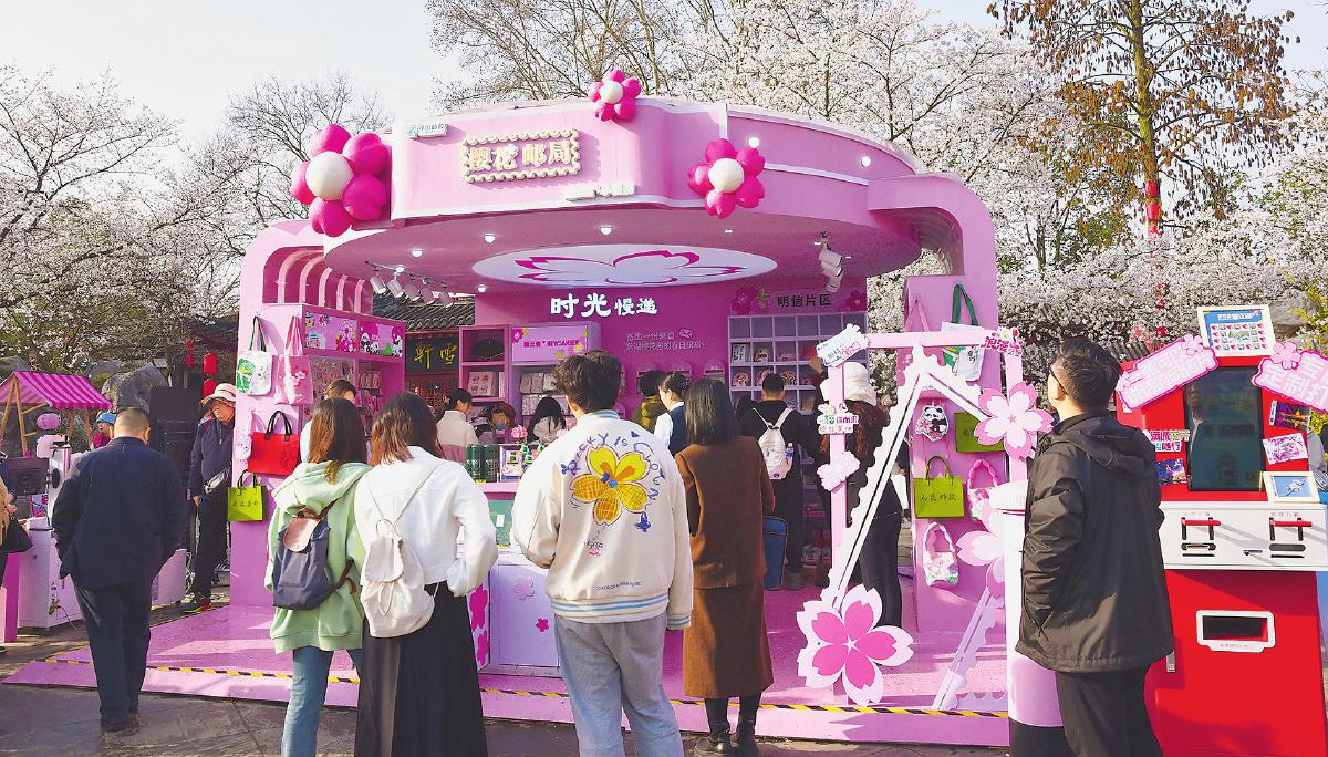 樱花邮局搬进景区,方便游客定制樱花季专属记忆。