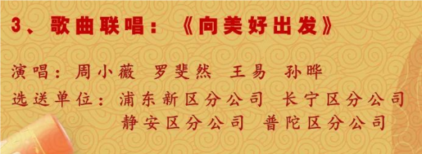 岁序更替,华章日新。据了解,本次迎春纳新活动的相关节目,由上海邮政的各二级单位选送,均由基层员工自编自排自演。小品、舞蹈、合唱、情景剧……整台节目类型多样,精彩纷呈,充分展现了大都市邮政员工丰富多彩的文化生活,充分体现上海邮政尊重劳动、尊重人才,企业员工亲如一家的和谐氛围。