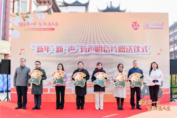 △孙宇和余洪伟向黄浦、虹口、杨浦、长宁、普陀、青浦6个区赠送了“新年‘新’声”有声明信片。