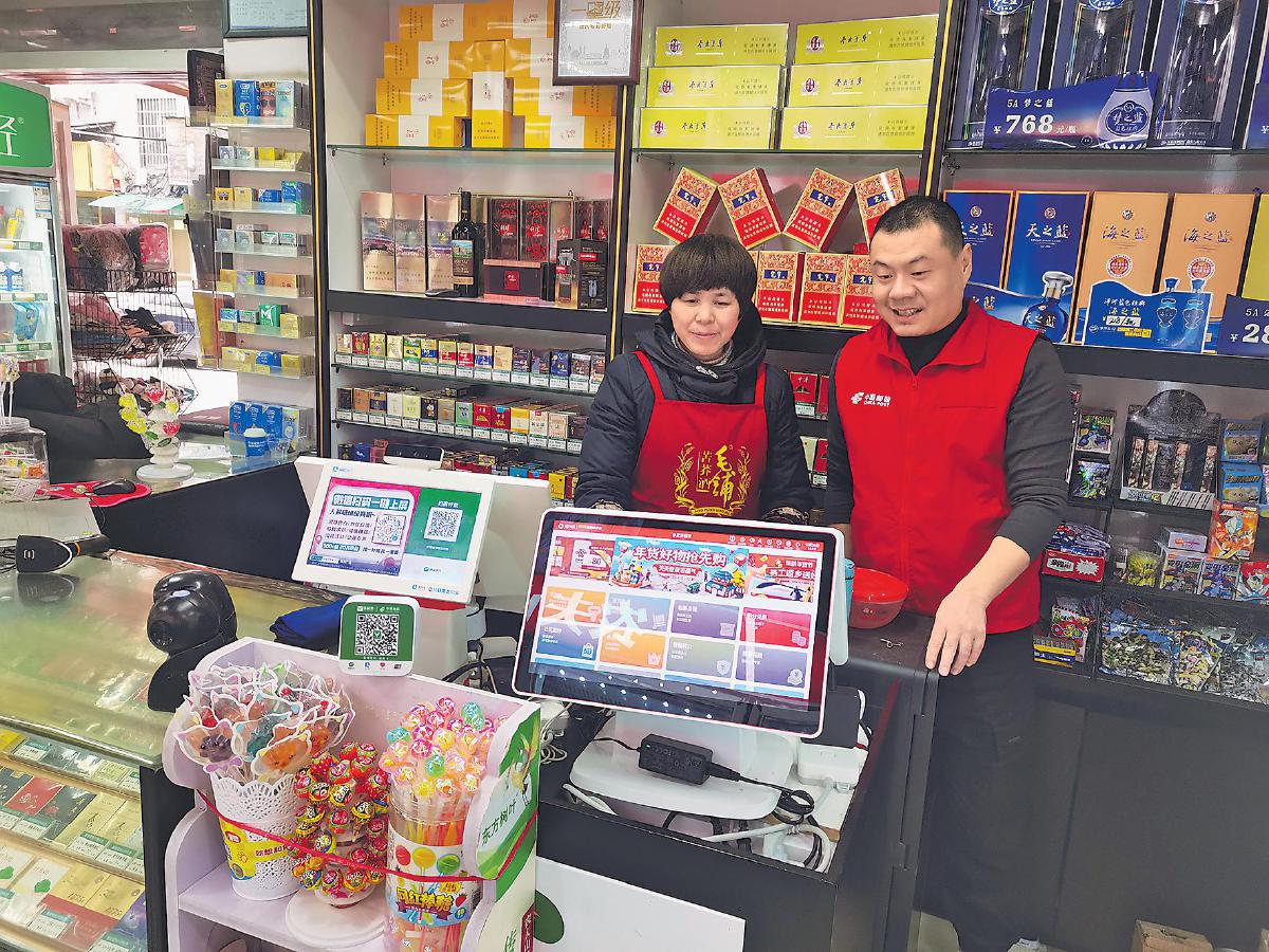 嘉兴市南湖区余新镇万家欣副食品店是嘉兴市邮政分公司五星邮乐购站点。谈起和邮政的合作,老板娘雷水娇非常开心,指着门头说:“你看!这些门头装饰都是邮政帮我做的,邮政还给我们提供了收银双屏机。我店里很多货都是通过操作‘邮掌柜’App进的。其实,外面也有很多进货平台,有些价格也很便宜,但是他们的整体服务都比不上邮政。邮政网点还给我办了收款码,每个月给我5万元的免费额度,地推人员管师傅每周都会到我店里,邮政网点工作人员每月也会来一两次,服务特别周到!”