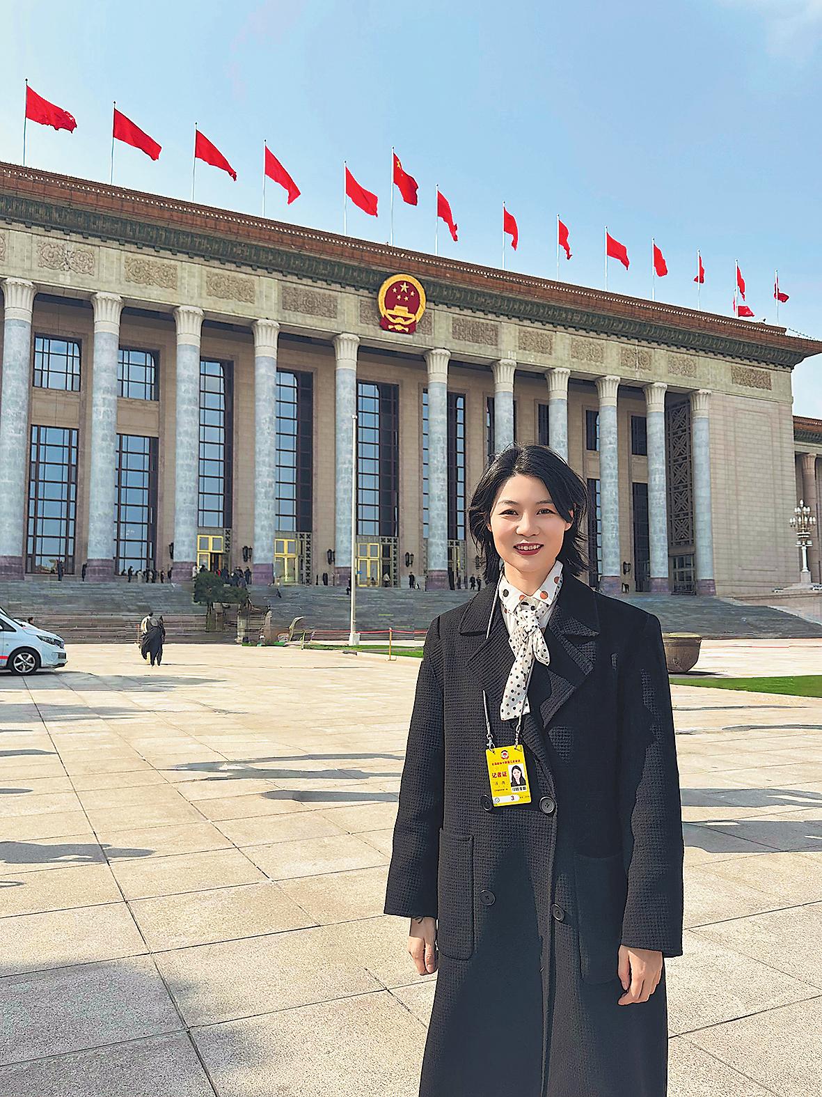 “她”力量是创新与活力。今年,《中国邮政报》两名年轻女记者张明月(左图)和汪尧(右图)参与全国两会采访。会前,她们精心策划方案,力求突破与创新;会中,她们忙碌的身影穿梭在代表和委员中间,用镜头和笔记录下邮政人的“两会时间”,全力以赴在两会“新闻大考”中作答。□受访者供图