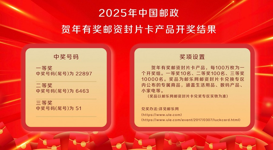 2025年中国邮政贺年有奖邮资封片卡产品开奖结果