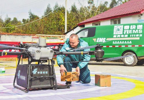 如果说深山高原的无人机运邮是“雪中送炭”,那么城市周边乡村的无人机投递则是“锦上添花”。在成都,邛崃和彭州两市相继开通常态化无人机邮路,使轻小邮件“朝发夕至”,目前累计投递报刊6000余份、包裹400余件。在自贡市荣县,无人机邮路开通后,凉水井村至高山镇的邮件双向流通时间节约了40分钟,村民网购的商品和寄递的土特产实现高效流转。