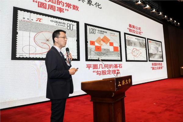 △首发仪式上还进行了一场别开生面的数学之美专题讲座,由上海大学数学系杨静桦副教授为大家讲解《数学之美》特种邮票图稿内4个数学公式的原理和背景。