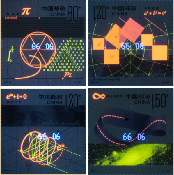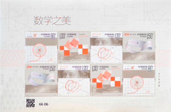 今天(3月14日),中国邮政正式发行《数学之美》特种邮票1套4枚,邮票图案名称为:圆周率、勾股定理、欧拉公式、莫比乌斯带。全套邮票面值4.70元。邮票计划发行数量为套票625万套,版式二80万版。
