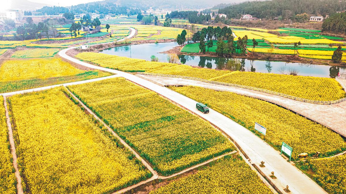 邮车穿梭在田野间,服务春耕生产。□张平 摄
