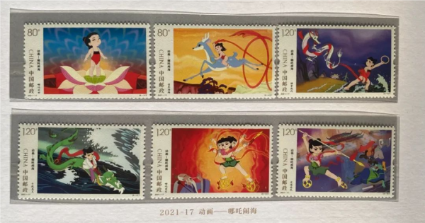 2021年8月28日,中国邮政曾发行《哪吒闹海》特种邮票,画面均出自上海美术电影制片厂的精品国漫《哪吒闹海》,通过方寸还原了很多人心中珍贵的童年记忆。