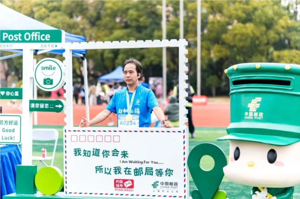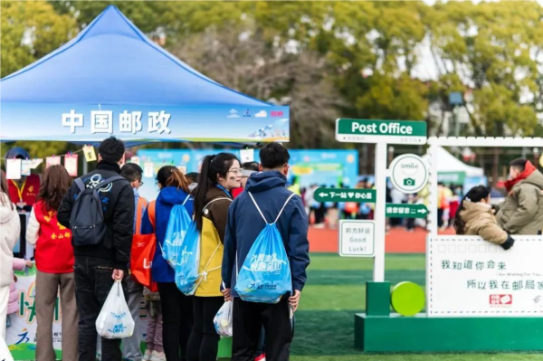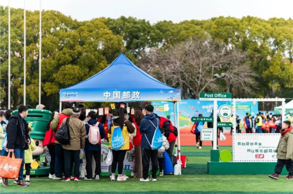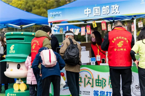2025年3月16日,上海湾区半程马拉松赛在上海市金山区盛大开跑。上海邮政在赛事集市特别设立快闪邮局,以邮政文创产品、有声明信片及定制纪念章盖章服务,为参赛者和市民打造“可邮寄的马拉松记忆”。