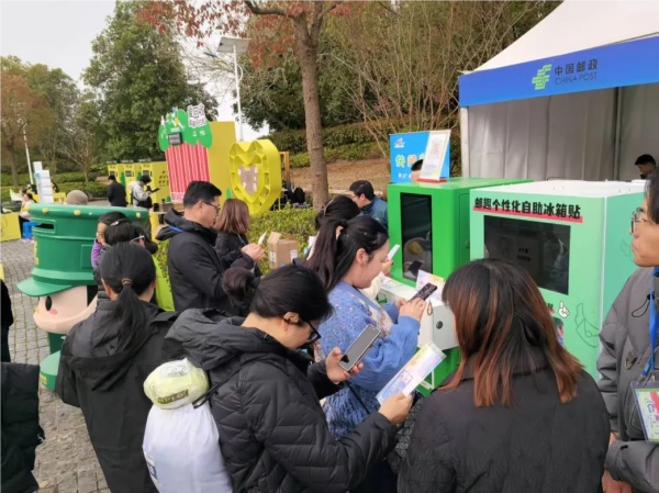此次快闪邮局活动,崇明区分公司精心策划,通过发行一系列限量版邮品,不仅展现了马拉松赛事的激情与活力,更深刻体现了崇明生态岛的独特魅力。个性化明信片制作服务更是成为了其中一大亮点,跑者们可以现场上传个人照片、录制语音祝福,制作专属于自己的“有声明信片”和“邮趣冰箱贴”,将这份热血与汗水凝结的记忆,通过邮政的方式邮寄给远方的亲友,留下一份珍贵且独一无二的纪念,顿时吸引了大批跑者纷纷前来打卡。