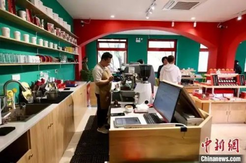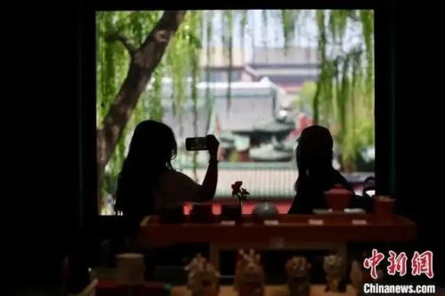 主题邮局推出特色咖啡及甜点,临窗卡座受到游客欢迎。设计师巧妙运用“框景”手法,宽阔的玻璃窗仿佛取景器,让游客通过新视角观赏万宁桥的碧波垂柳、火德真君庙的飞阁重檐。