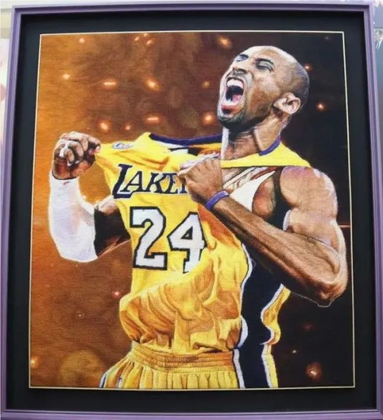 用绒绣技法制作而成的科比像真的很震撼。