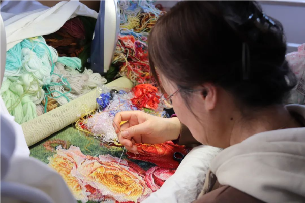 作为洋泾绒绣传习所的掌舵者,包炎辉带领着这群“能工巧匠”不断精进技术。