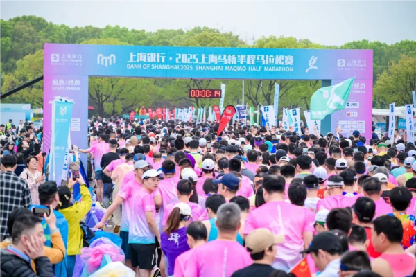 4月12日,2025上海马桥半程马拉松赛在久事体育场馆旗忠网球中心鸣枪开跑。