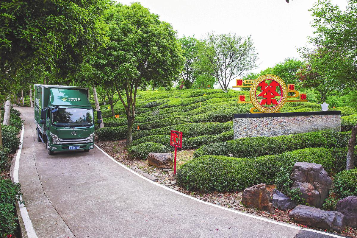 邮车驶入“邮乐农品”黄山茶语基地。□徐雷 摄
