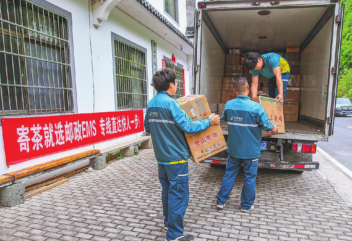 邮政员工深入制茶企业,上门收寄徽茶邮件。□徐雷 摄