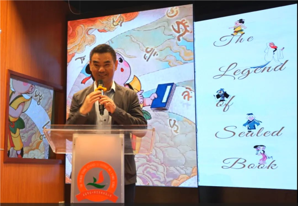 △上海市分公司邮政业务部总经理朱顺军宣读《动画-天书奇谭》特种邮票发行通告。