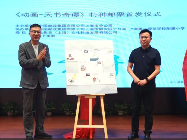 上午,上海市邮政分公司携手上影元(上海)文化科技发展有限公司在上海第一师范学校附属小学共同举办《动画——天书奇谭》特种邮票首发仪式,以邮票为载体,带领大众重温经典动画的魅力,在为传统文化传承注入新活力的同时也为小朋友们庆祝这一美好的节日。