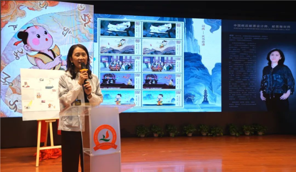 △设计师郝欧现场讲解邮票设计过程中的小故事。