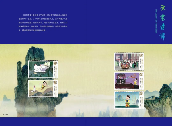 今天(6月1日)是“六一国际儿童节”,在这个洋溢着欢乐与童真的日子里,中国邮政正式发行《动画——天书奇谭》特种邮票。该套特种邮票1套5枚,全套邮票面值5.20元,计划发行数量500万套。本套邮票以《天书奇谭》主要人物蛋生为主线,通过五组场景展现故事精髓,并结合动画特点,巧妙设计荧光效果,整体画面清晰,色彩饱和,极具艺术价值。