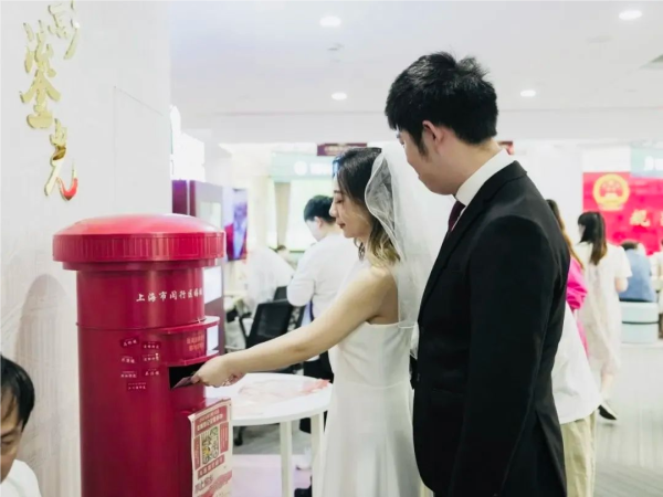在这个爱意满满的日子里,上海邮政携手市、区民政局为新人打造跨越时空的浪漫仪式。
