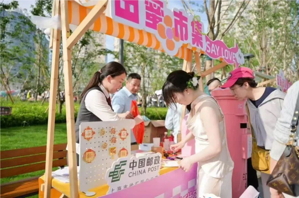 浦东邮政泥城支局在滴水湖广场设立快闪邮局,“520,临港遇见爱”首发临港定制型明信片和邮票供邮迷收藏,还有丰富的邮政文创产品和冰激凌、冰饮等美食供应。蓝村路支局携手浦东新区民政局,“爱在浦东,见证幸福”,现场有明信片书写指导和加盖纪念邮戳在内的特色邮政服务活动。