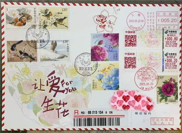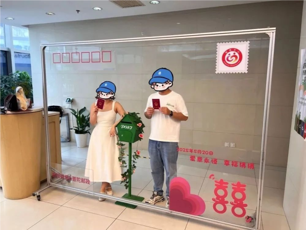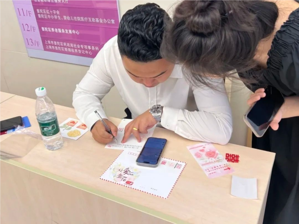 闵行邮政在闵行区婚登处设立邮爱驿站,推出“让爱生花”主题纪念封与贺卡,以手写温度传递纸短情长,搭配专属限定文化戳,定格独一无二的领证时刻。