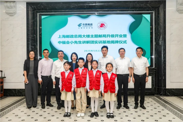 5月22日,位于四川路桥旁的上海邮政总局大楼内人头攒动、气氛热烈。原来,一场别开生面的上海邮政总局大楼主题邮局升级开业暨中福会小先生讲解团实训基地揭牌仪式在这里举行。此次活动不仅是上海邮政在文化领域的一次重要亮相,更是政企合作、文化传承与青少年教育深度融合的生动实践。